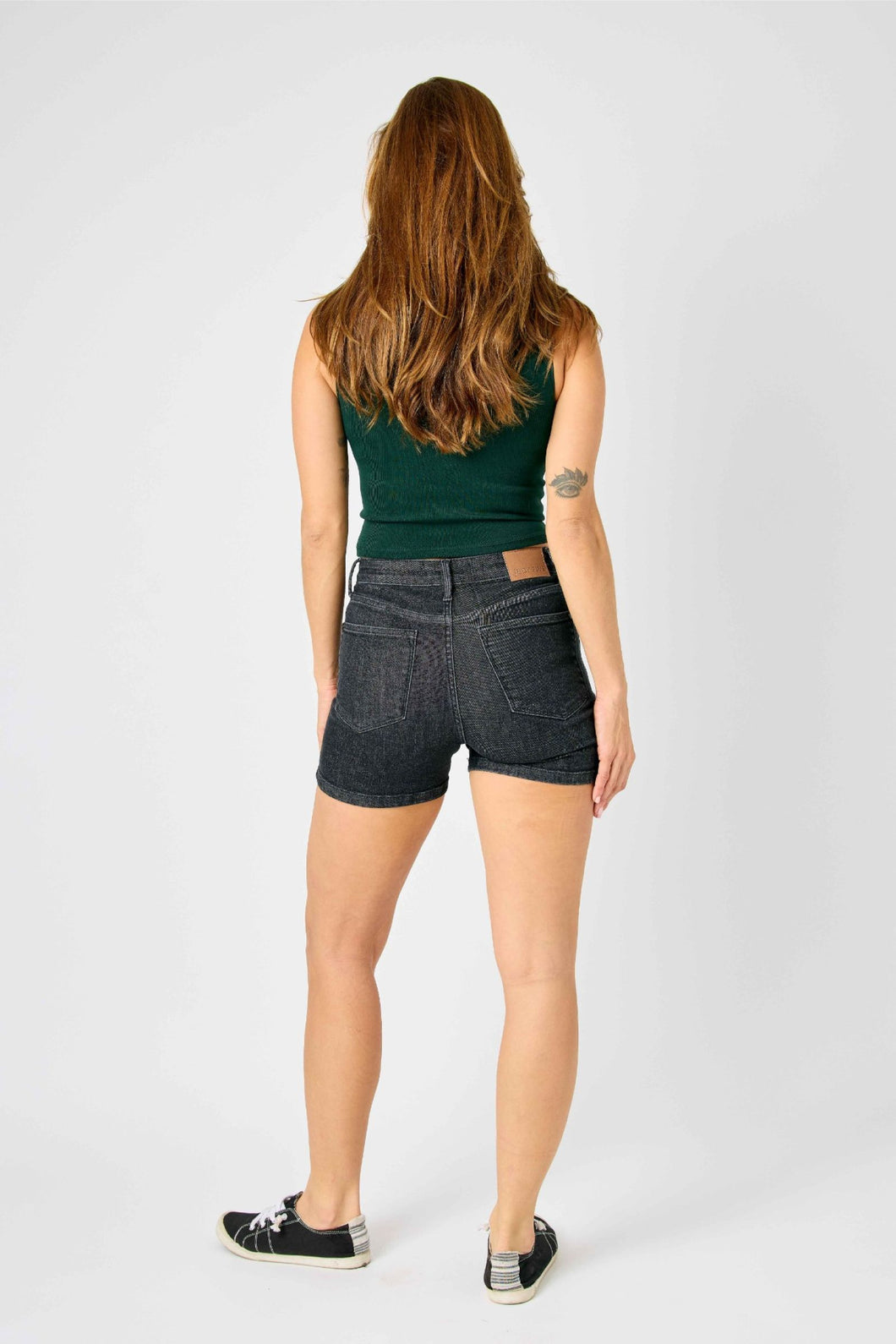 - HIGH WAIST TUMMY CONTROL WASHED BLACK SHORTS